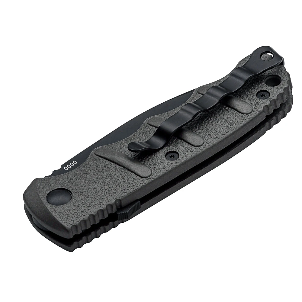 Avec sa longueur totale de 207mm, ce couteau est assez compact pour ĂȘtre utilisĂ© dans n’importe quelle situation et suffisamment robuste pour affronter les conditions les plus extrĂȘmes. La finition noire lui donne un aspect trĂšs Ă©lĂ©gant qui complĂštera votre collection.