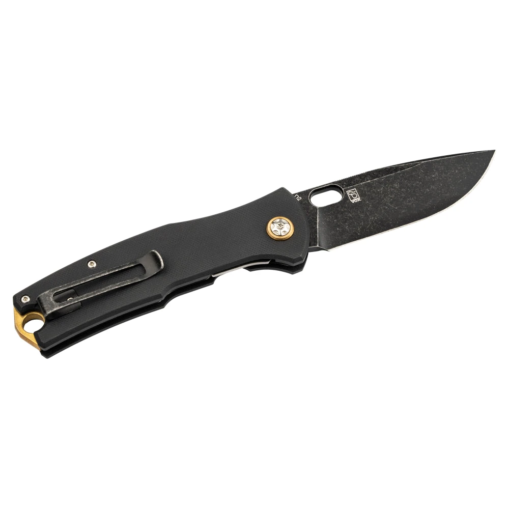 Le corps du couteau est constituĂ© d’un manche en G10, un matĂ©riau qui est reconnu pour sa rĂ©sistance aux chocs et aux rayures. G10 est Ă©galement facile Ă nettoyer et rĂ©siste Ă l’eau, ce qui en fait un choix idĂ©al pour les personnes qui utilisent leur couteau de poche dans des conditions difficiles. Le manche a une finition noire qui lui donne une apparence Ă©lĂ©gante et professionnelle.