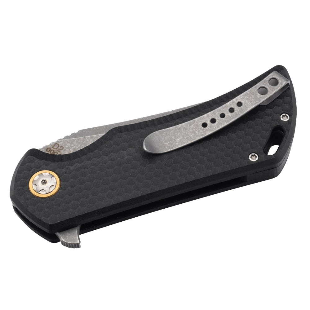 La finition stonewash de la lame ajoute une esthĂ©tique brute et Ă©lĂ©gante, tandis que le clip de port pratique permet un transport facile et sĂ»r. En outre, l’Ă©tui en nylon fourni protège le couteau lors du transport ou du stockage.