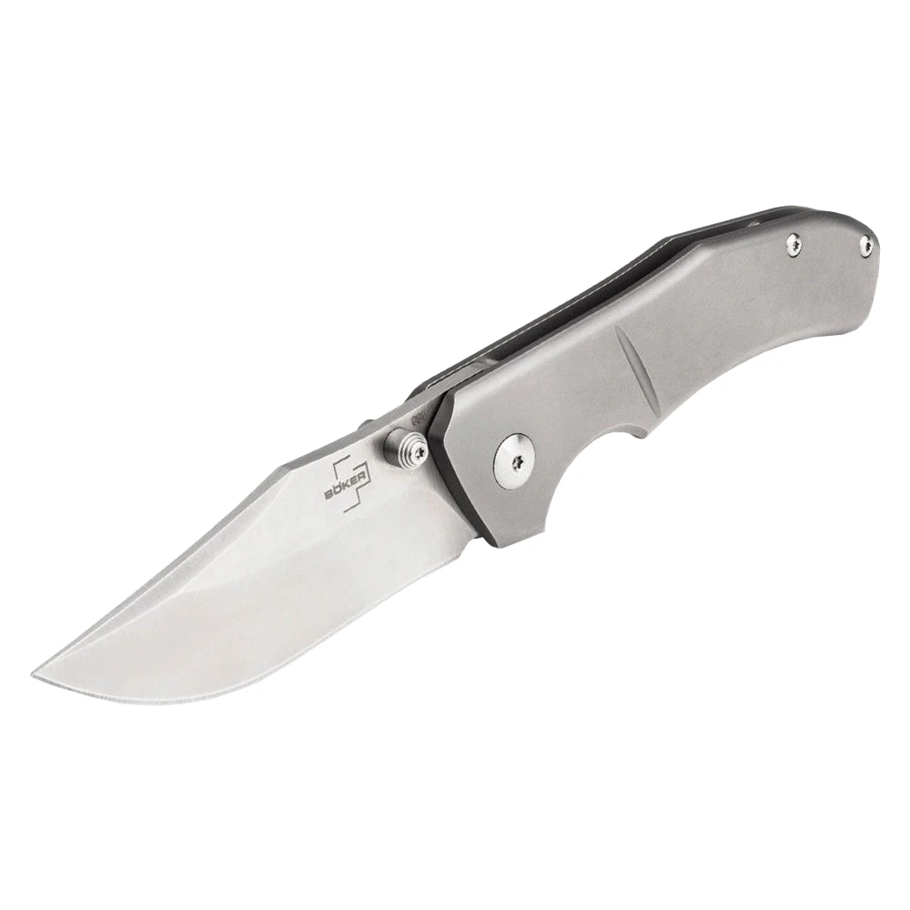 Le manche en titane est de couleur gris, ce qui ajoute une touche d’Ă©lĂ©gance et de classe Ă l’ensemble du couteau. Le matĂ©riau du manche, combinĂ© avec le verrouillage de la structure du cadre, fournit une prise solide pour que l’utilisateur puisse tenir et utiliser l’outil en toute sĂ©curitĂ©.