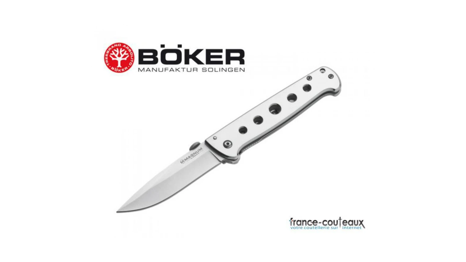 Le Boker Magnum Pocket Full métal est un couteau pliant en acier durable avec une finition polie. La poignée est également en acier inoxydable. Ce couteau est bien placé en matiÚre de prix et a un coté sportif pour un usage quotidien. La lame est en satin 440 inoxydable. Le manche possÚde des perforations sphériques pour donner cet aspect sportif. Le systÚme de fermeture est Liner Lock.